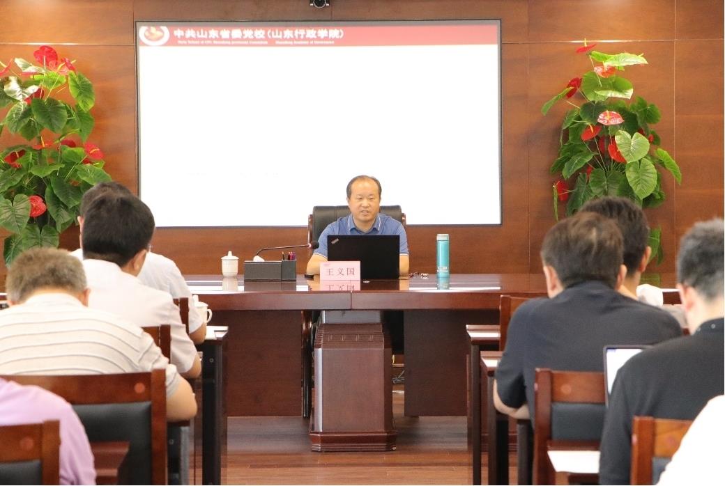 根據(jù)學(xué)習(xí)貫徹習(xí)近平新時代中國特色社會主義思想主題教育工作安排,6月19日,魯商集團舉辦第十九期“魯商文化講堂”暨主題教育讀書班專題輔導(dǎo),省委黨校政治和法律教研部副主任、教授王義國受邀作專題授課。
