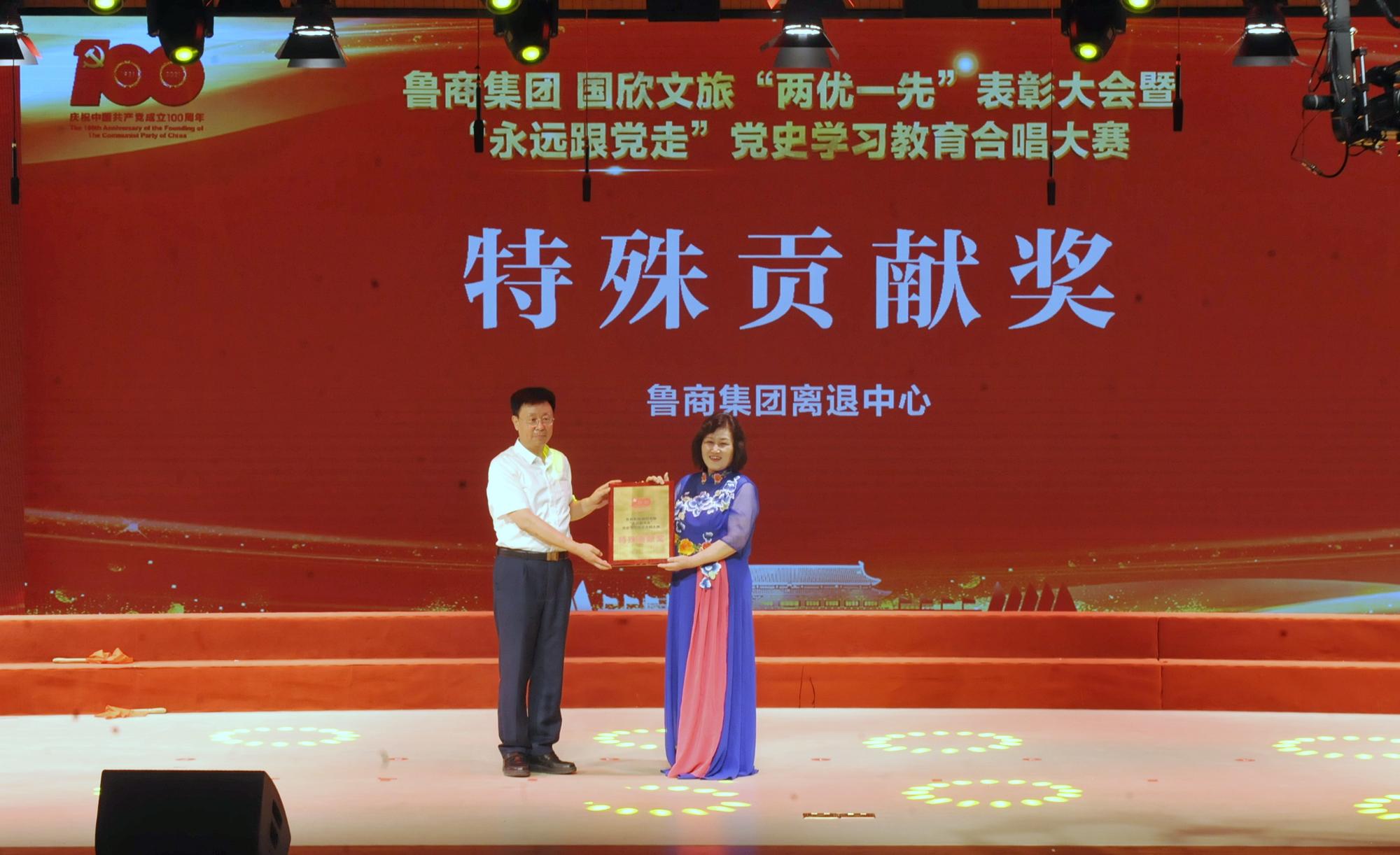 在隨后舉行的“永遠跟黨走”黨史學習教育合唱大賽總決賽環節,晉級決賽的9支參賽隊伍為現場觀眾帶來了一場精彩絕倫的視聽盛宴。經過激烈角逐,最終銀座集團、青島酒店學院、山東商院3個單位獲得“鉆石獎”,7個單位獲得“金獎”,13個單位獲得“銀獎”。魯商集團離退休中心獲得特殊貢獻獎。