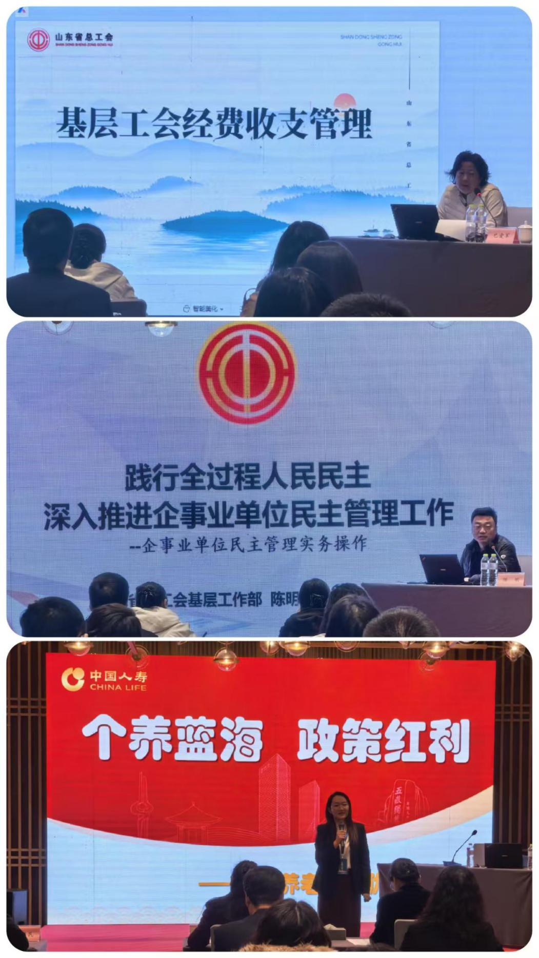 培訓班邀請省總工會經(jīng)費審查委員會辦公室主任、一級調(diào)研員巴愛軍講解了工會財務和經(jīng)審工作實務,省總工會基層工作部負責人陳明講解了工會基層工作實務,并邀請專家解讀了個人養(yǎng)老金制度等有關(guān)政策,通過案例剖析、互動討論等方式,進一步提升了工會干部的理論水平和業(yè)務能力。培訓還組織了紅色教育基地現(xiàn)場教學,開展了“我為群眾辦實事”、推進美德山東和信用山東“進企業(yè)”主題研討,引導各級工會踐行社會主義核心價值觀,提升服務職工質(zhì)效。銀座集團、福瑞達、山東城發(fā)、魯商科技、魯商服務、山東商院、齊魯醫(yī)藥、銀座幼教等8家單位工會圍繞勞模工匠選樹、民主管理、全員創(chuàng)新、服務職工、黨建引領、就業(yè)促進、素質(zhì)提升等方面作了交流發(fā)言。