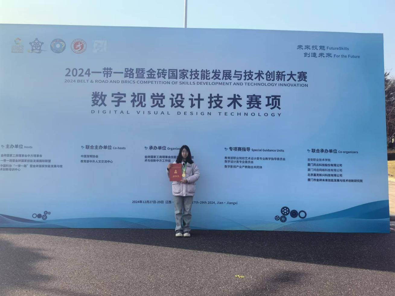 近日,2024年一帶一路暨金磚國家技能發(fā)展與技術(shù)創(chuàng)新大賽數(shù)字視覺設(shè)計(jì)技術(shù)賽項(xiàng)(高職組)國內(nèi)總決賽順利舉行。山東城市服務(wù)職院學(xué)生郭冰琛憑借出色的技能和創(chuàng)新能力,斬獲數(shù)字視覺設(shè)計(jì)技術(shù)賽項(xiàng)國賽一等獎。