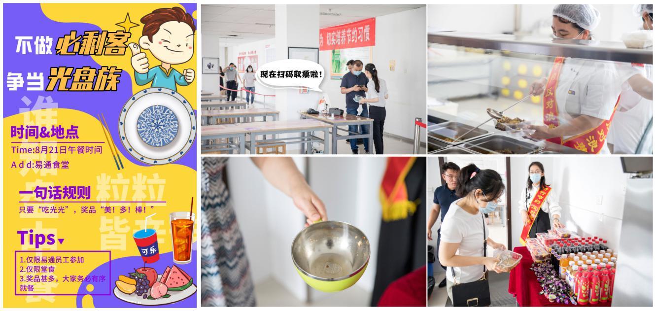 為深入貫徹落實習近平總書記關于“堅決制止餐飲浪費行為,切實培養節約習慣”的重要指示精神,大力倡導勤儉節約、文明健康的生活習慣,易通于8月21日組織開展了一場別開生面的“不做‘必剩客’ 爭當‘光盤族’”文明餐桌行動。