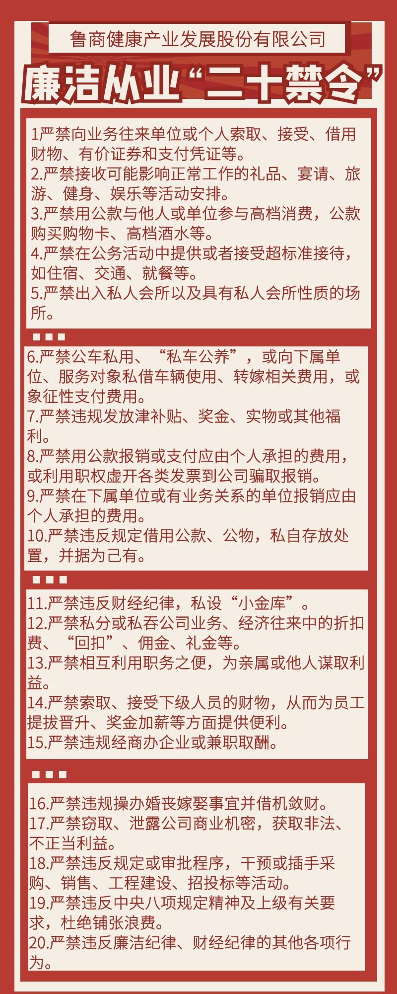 魯商發展推出廉潔從業“二十禁令”